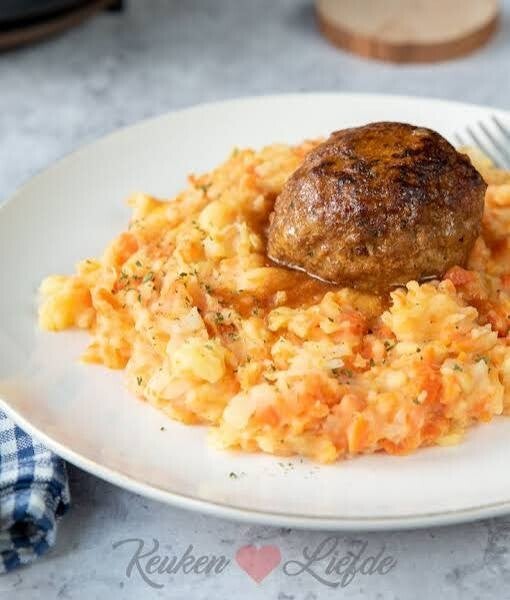 Peeenstampot met gehaktbal en jus